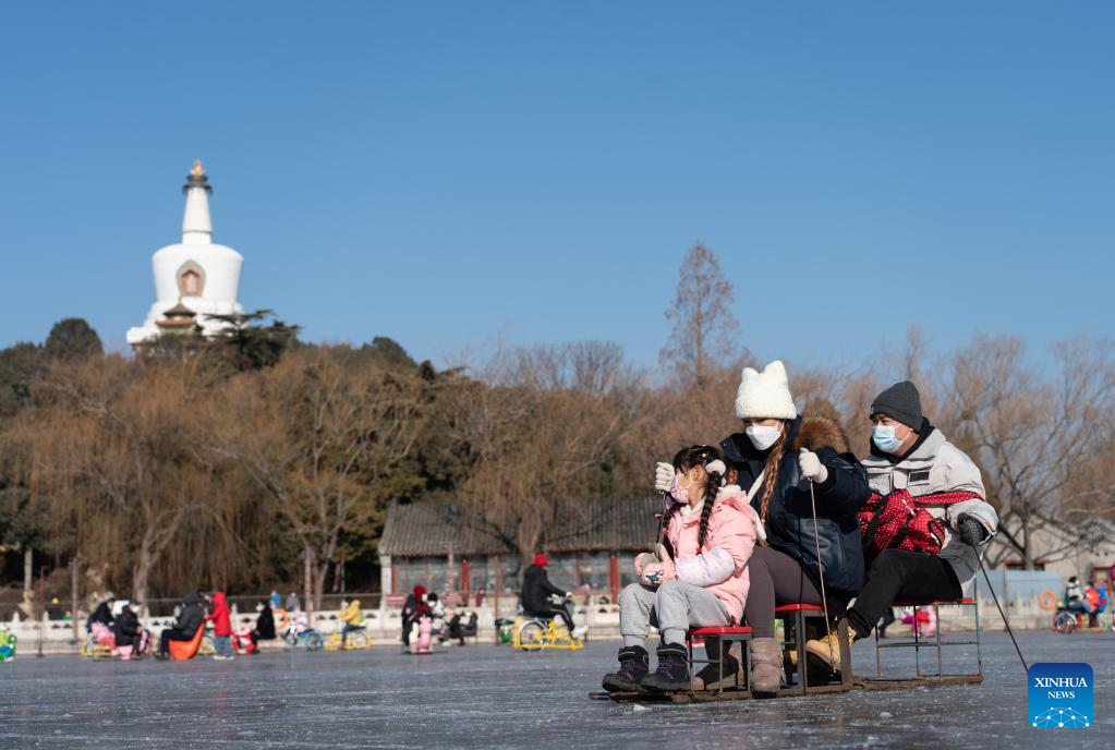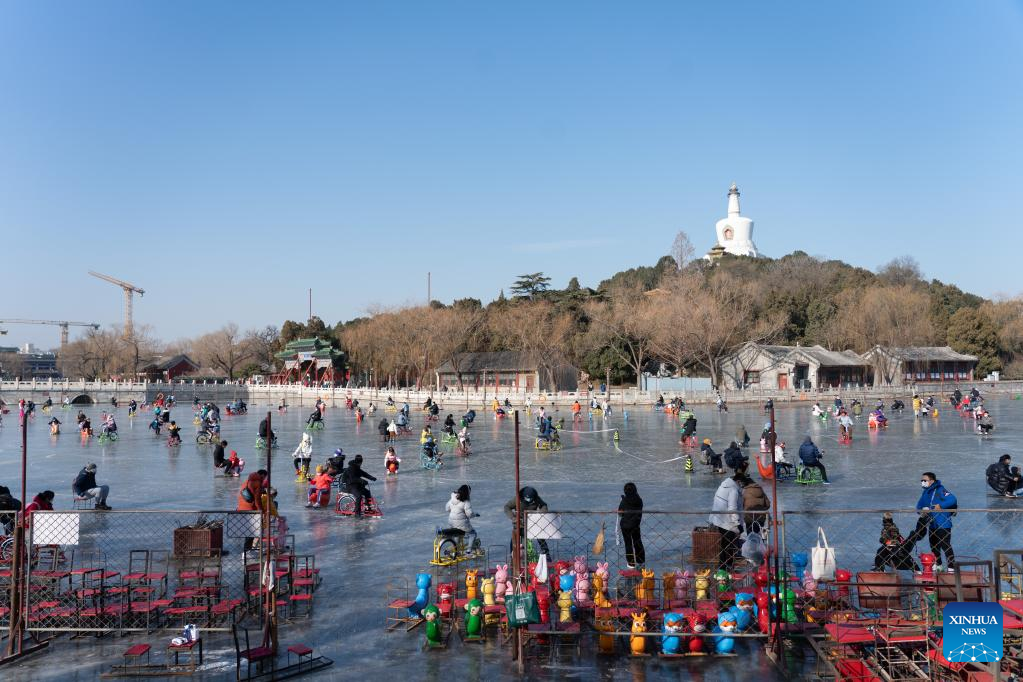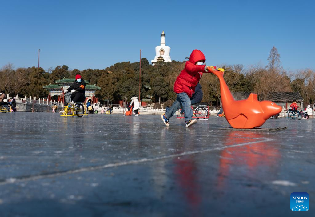 People have fun on the ice rink at Beihai Park in Beijing, capital of China, Dec. 31, 2022. (Xinhua/Chen Zhonghao)