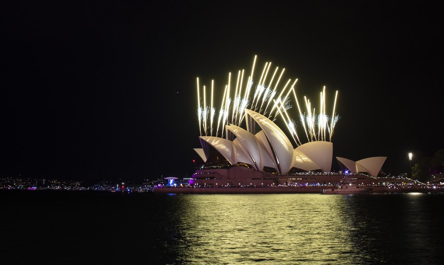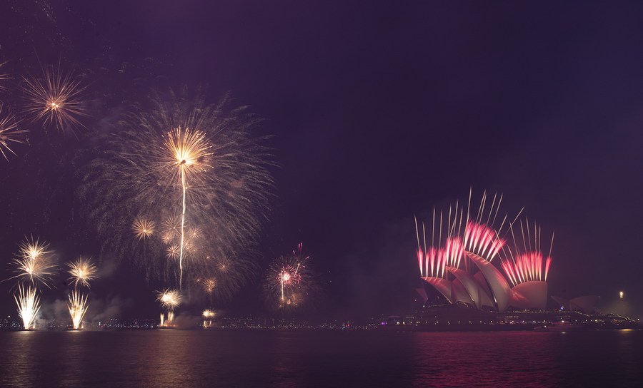 Fireworks are seen during the New Year's Eve celebrations in Sydney, Australia, Dec. 31, 2022. (Xinhua/Bai Xuefei)