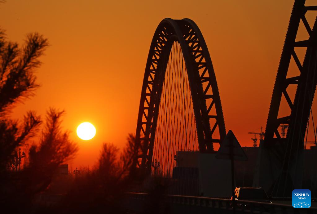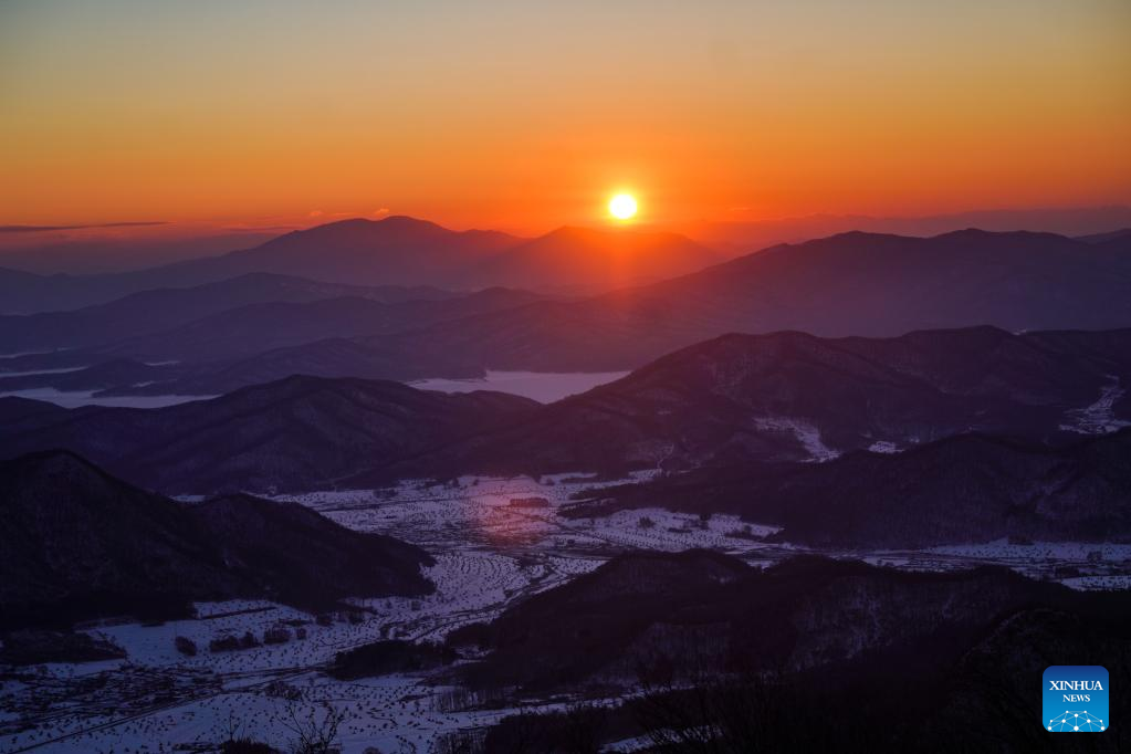 This photo taken on Jan. 1, 2023 shows the sunrise scenery in Jilin City, northeast China's Jilin Province. (Xinhua/Yan Linyun)