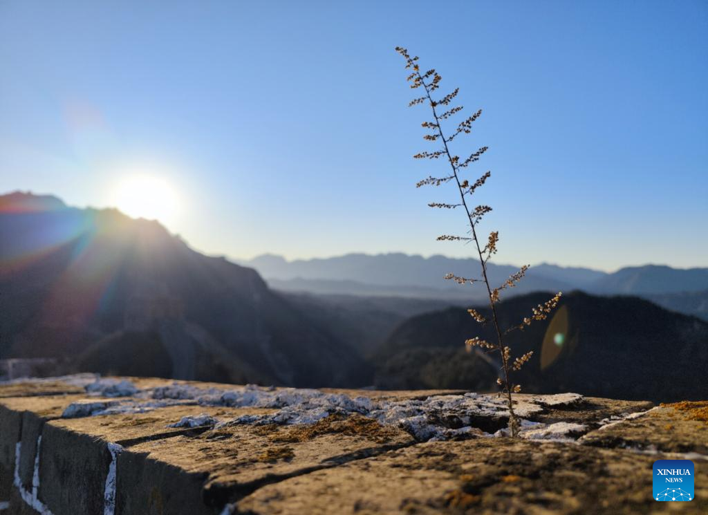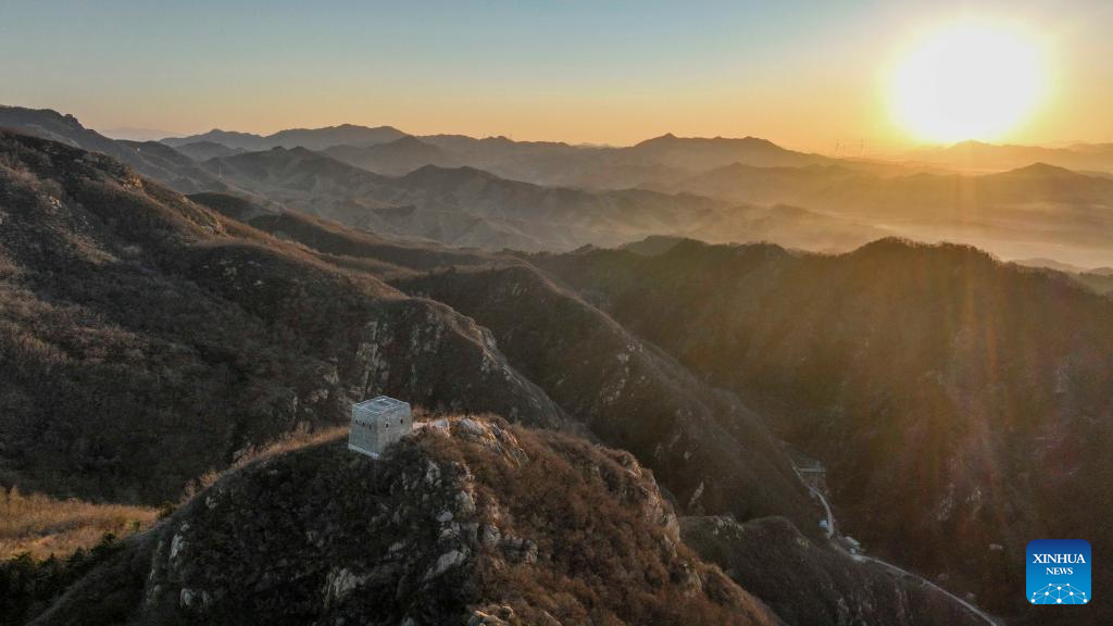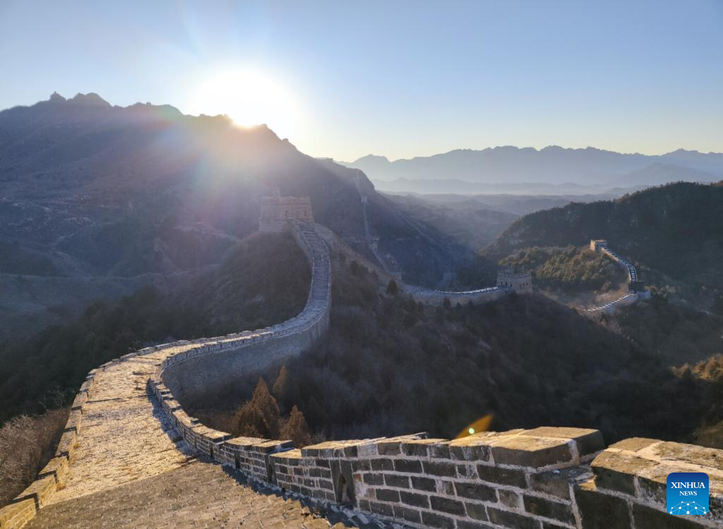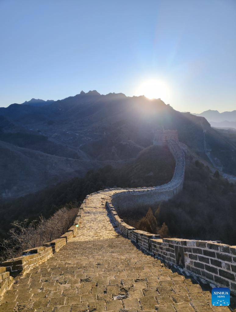 This photo taken on Jan. 1, 2023 shows the sunrise scenery at the Simatai section of the Great Wall in Miyun District, Beijing, capital of China. (Xinhua/Xing Guangli)