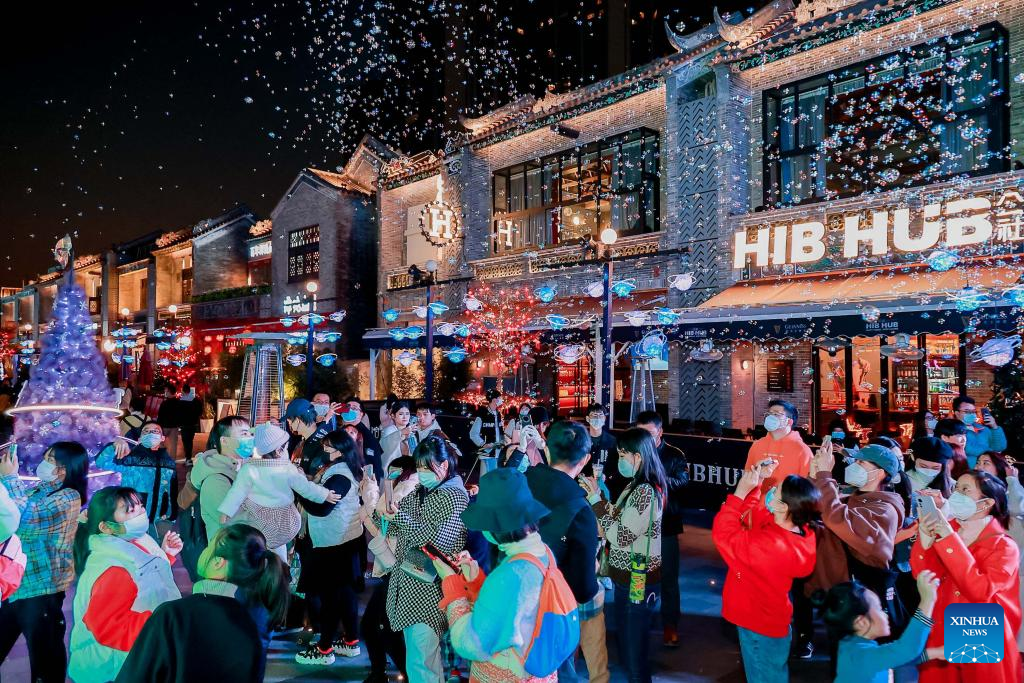 People visit Tiande Square in Guangzhou, south China's Guangdong Province, Jan. 1, 2023. People take part in various leisure activities to spend the New Year holiday here. (Xinhua/Liu Dawei)