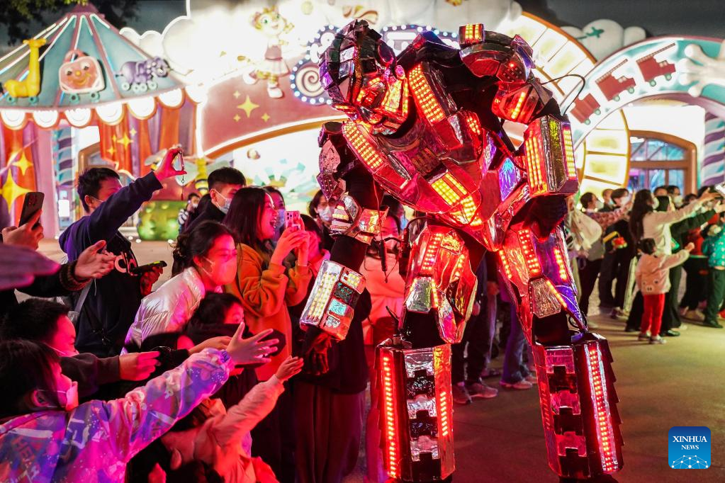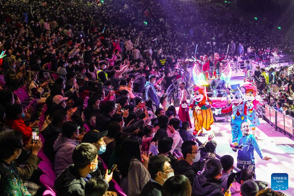 Tourists celebrate upcoming New Year at Chimelong International Circus in Guangzhou, south China's Guangdong Province, Dec. 31, 2022. People take part in various leisure activities to spend the New Year holiday here. (Xinhua/Liu Dawei)