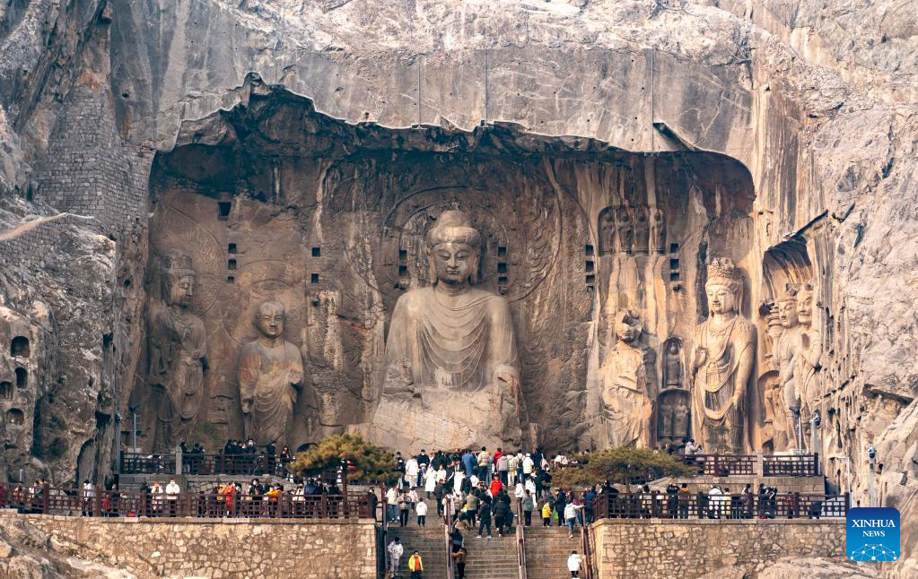 Tourists visit the Longmen Grottoes during the New Year holiday in Luoyang, central China's Henan Province, Jan. 2, 2023. (Photo by Liu Bing/Xinhua)