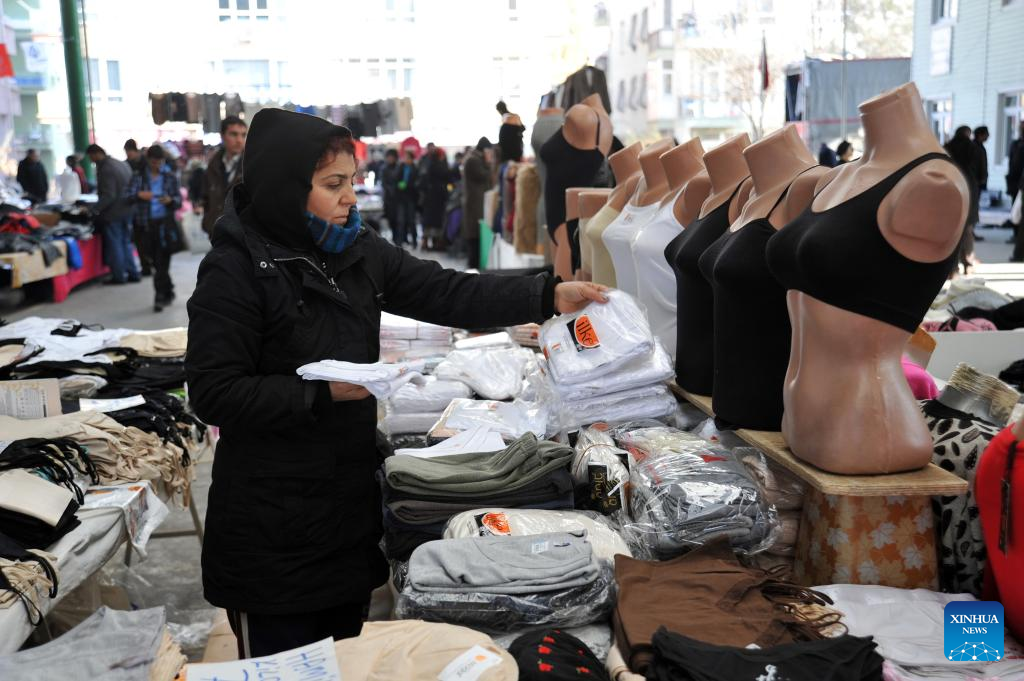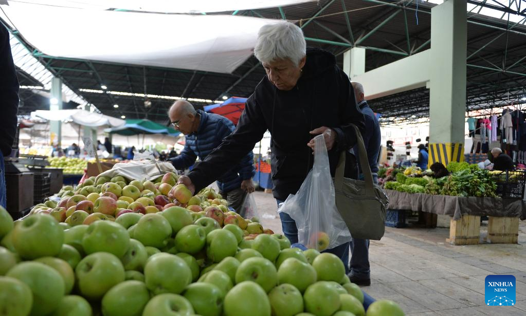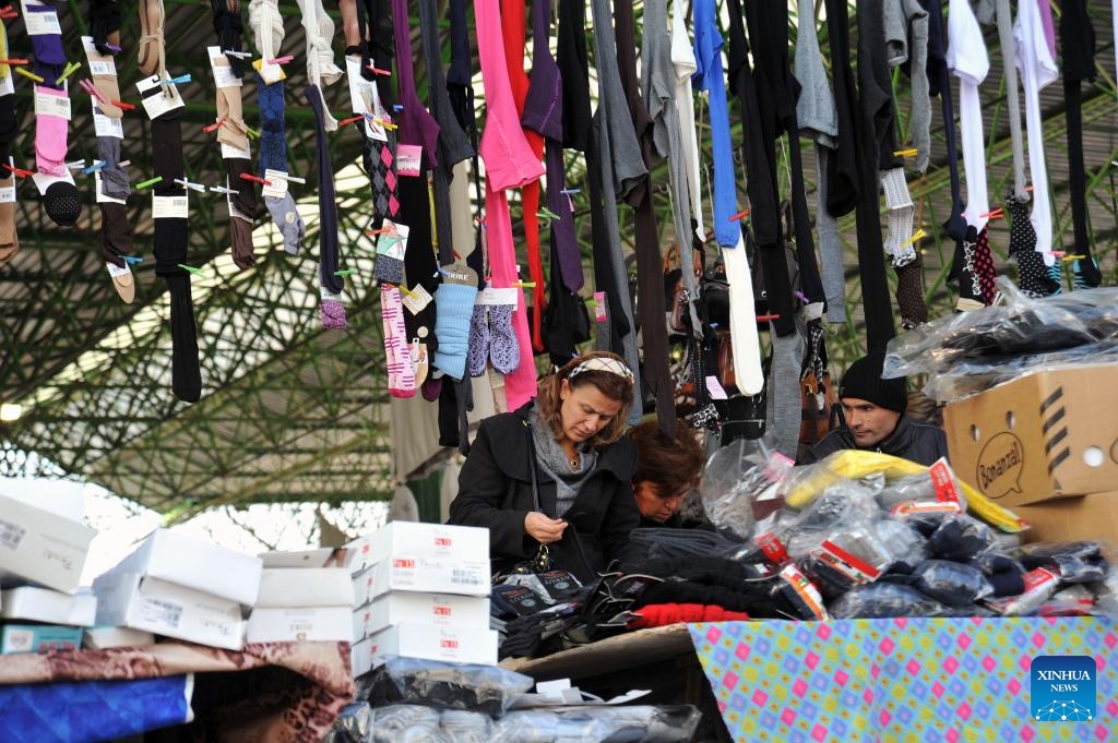 A woman shops at a market in Ankara, Türkiye, on Jan. 3, 2023. Türkiye's annual inflation fell sharply to 64.27 percent in December due to a base effect, official data showed on Tuesday. (Photo by Mustafa Kaya/Xinhua)