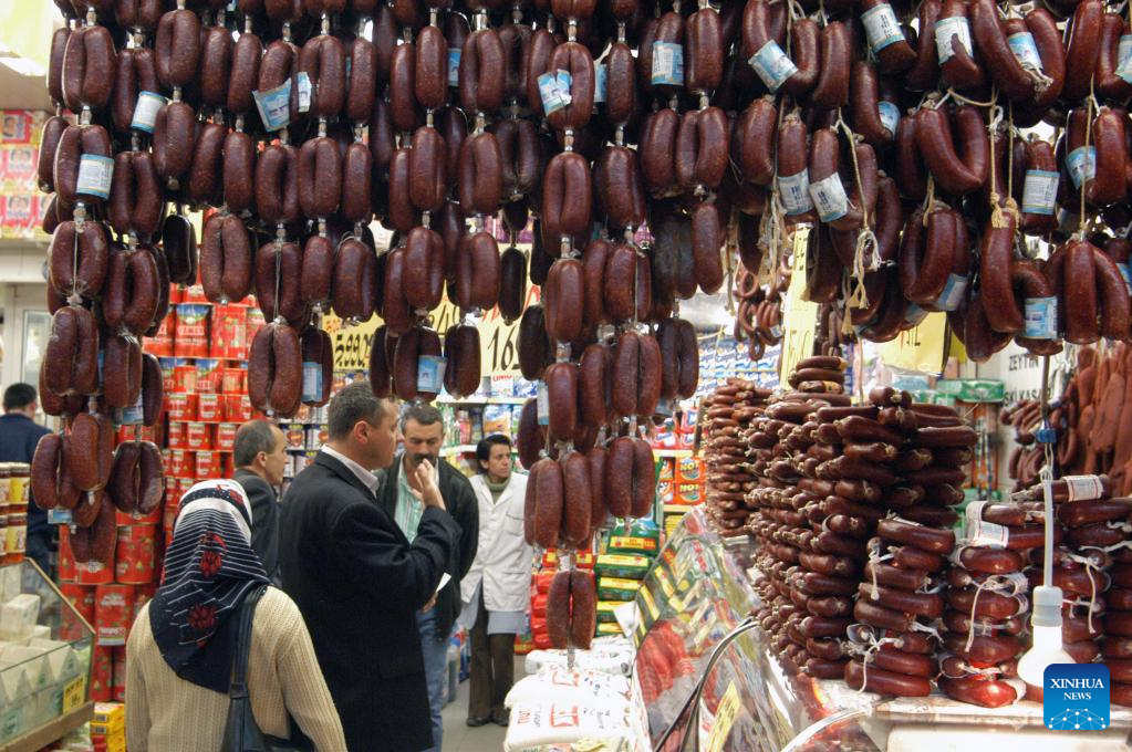 People shop at a market in Ankara, Türkiye, on Jan. 3, 2023. Türkiye's annual inflation fell sharply to 64.27 percent in December due to a base effect, official data showed on Tuesday. (Photo by Mustafa Kaya/Xinhua)