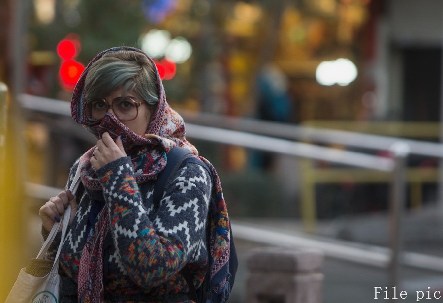 A woman covers her nose and mouth due to the bad air quality in Tehran, Iran, on Nov. 14, 2019. The Iranian authorities closed kindergartens and primary schools on Wednesday over serious air pollution in Iran's capital Tehran, Eghtesad Online news website reported. (Photo by Ahmad Halabisaz/Xinhua)