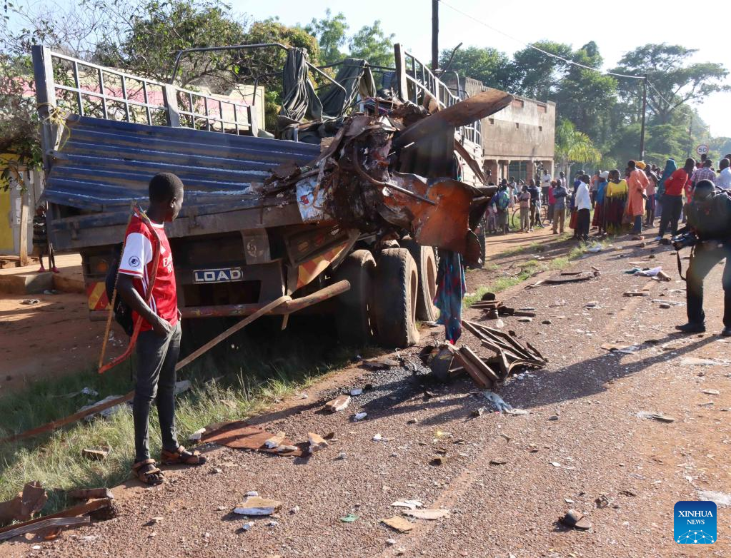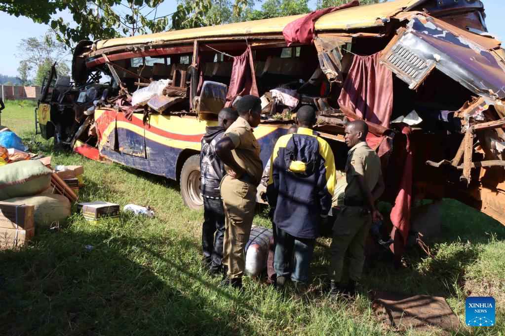 Sixteen people have died when a bus crashed into a stationary truck at night in the northern Ugandan district of Oyam, police said on Friday. (Photo by Nicholas Kajoba/Xinhua)