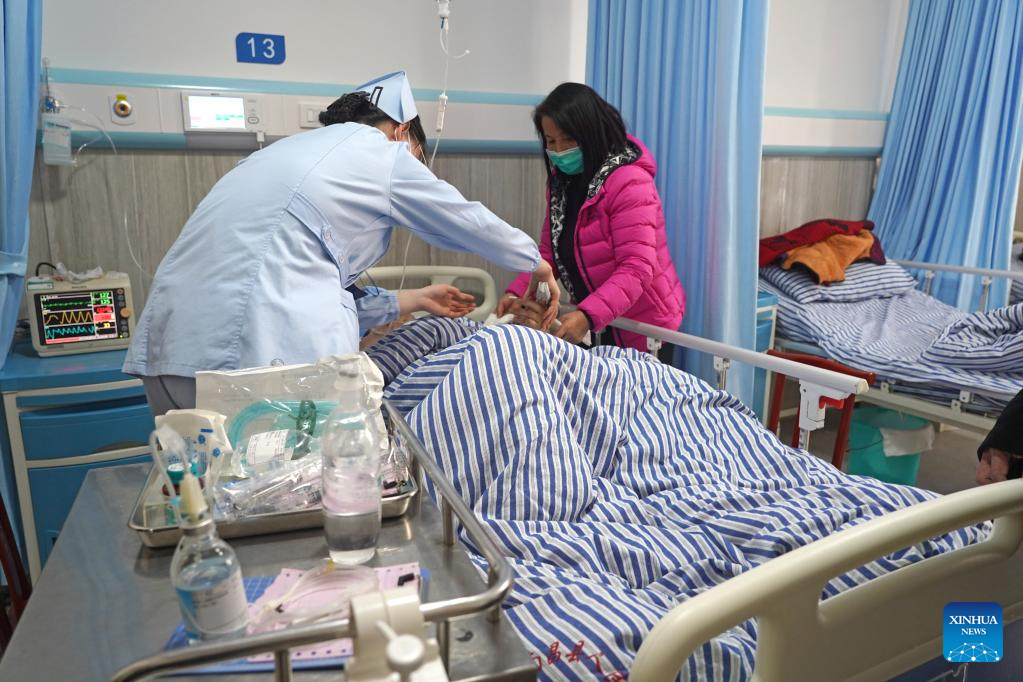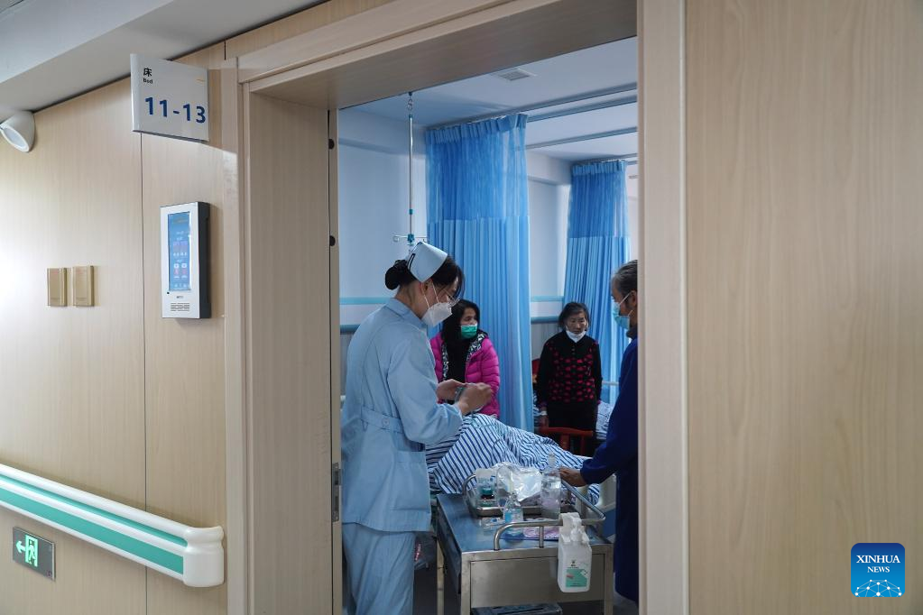 A wounded person rests after receiving treatment at a hospital in Nanchang County, east China's Jiangxi Province, Jan. 8, 2023. (Xinhua/Wan Xiang)