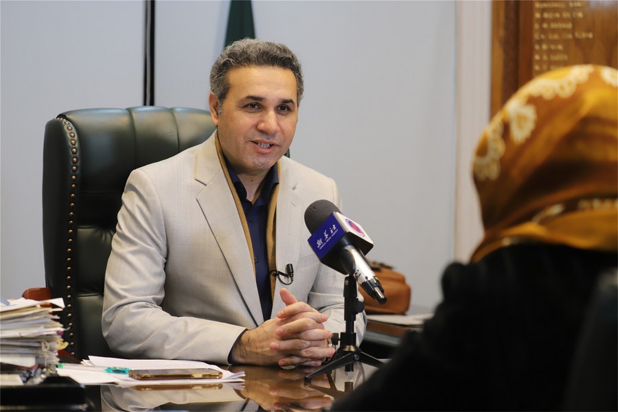 Muhammad Hanif Gul, divisional superintendent of Lahore division at the Pakistan Railways under the Ministry of Railways, receives Xinhua's exclusive interview in his office in Pakistan's eastern city of Lahore on Jan. 5, 2023. (Xinhua/Jiang Chao)