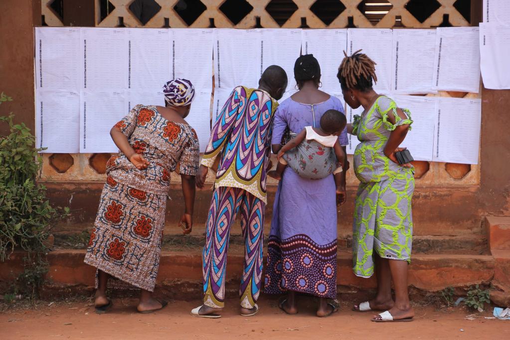 Voters look at the electoral list at a polling station in Abomey, Benin, on Jan. 8, 2023. Benin held legislative elections on Sunday. (Photo by Seraphin Zounyekpe/Xinhua)