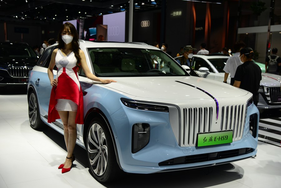 A Hongqi new energy vehicle is on display during the 19th China (Changchun) International Automobile Expo in Changchun, capital of northeast China's Jilin Province, July 18, 2022. (Xinhua/Zhang Jian)