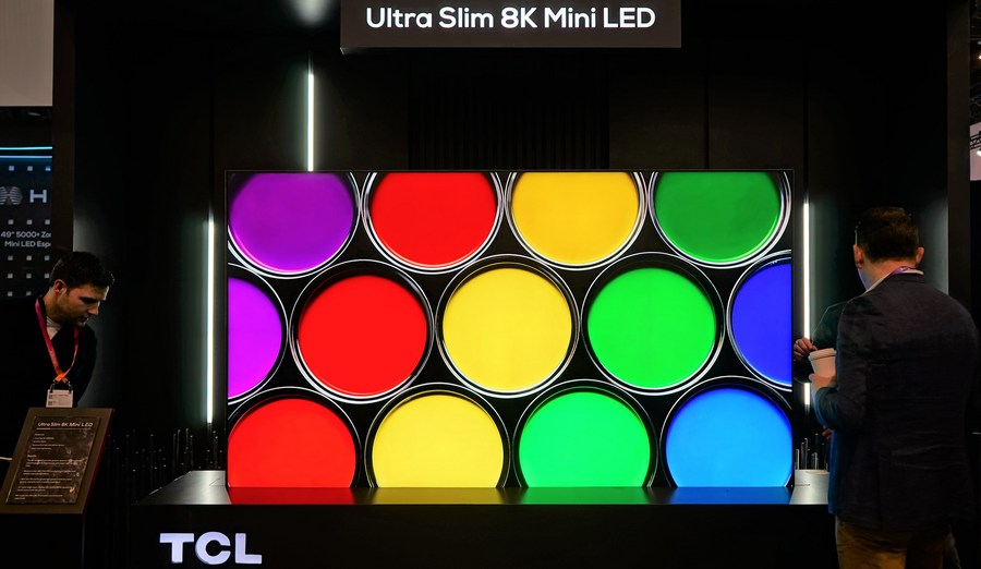 People visit the exhibition area of Chinese company TCL during the 2023 Consumer Electronics Show (CES) in Las Vegas, the United States, Jan. 6, 2023. (Photo by Zeng Hui/Xinhua)