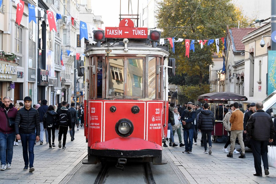 ISTANBUL, Nov. 25, 2022 (Xinhua) -- Pedestrians walk on the Istiklal Avenue in Istanbul, Türkiye, Nov. 22, 2022. (Xinhua/Shadati)