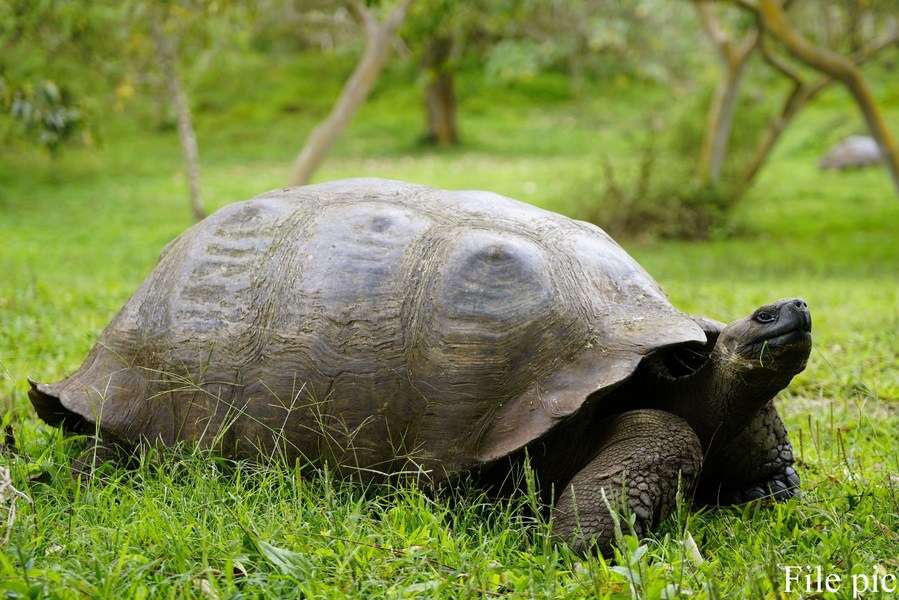Photo taken on Oct. 9, 2017 shows a gaint tortoise on the Santa Cruz Island, one of the Galapagos Islands, in Ecuador. (Xinhua/Xu Rui)