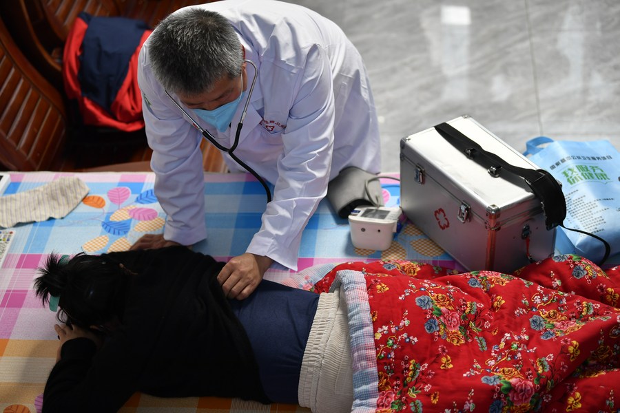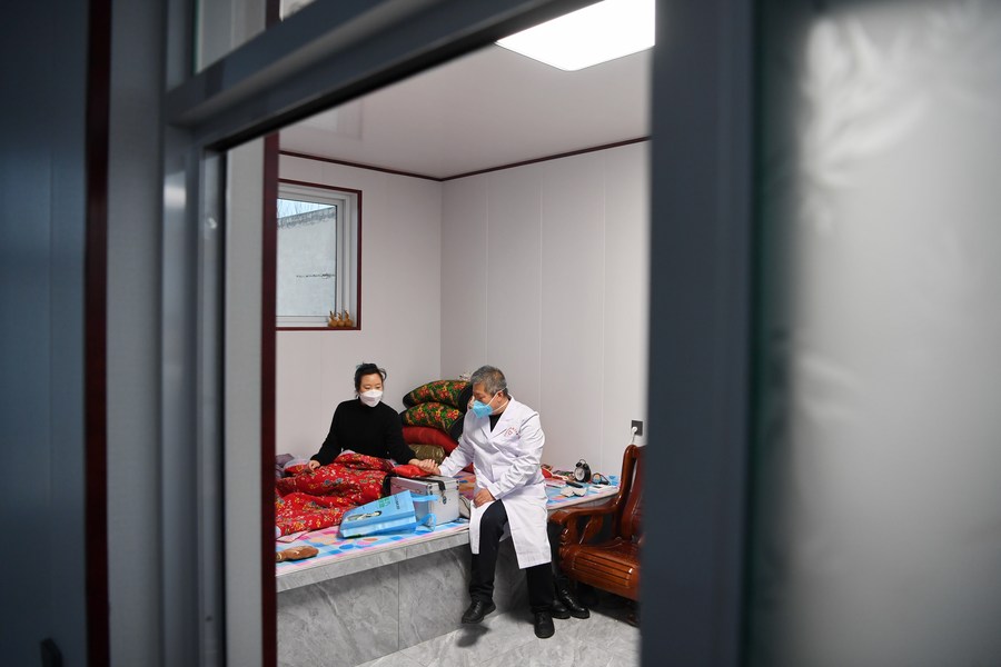 Doctor Sun Qingliang treats a patient at Wangdadiao Village, Fengnan District of Tangshan City, north China's Hebei Province, Jan. 11, 2023. (Xinhua/Mu Yu)