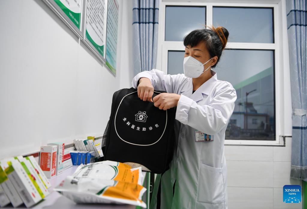 Doctor Dong Xiuqin prepares health kits for home visits at a village clinic in Lingzishang Village, Fengnan District of Tangshan City, north China's Hebei Province, Jan. 11, 2023. As China now is entering a new phase of COVID response, Fengnan District has geared up to strengthen the roles of grassroots health facilities against the highly contagious virus. More than 500 health teams comprising over 1,100 medical personnel have been assembled to provide services for rural residents in the district. (Xinhua/Mu Yu)