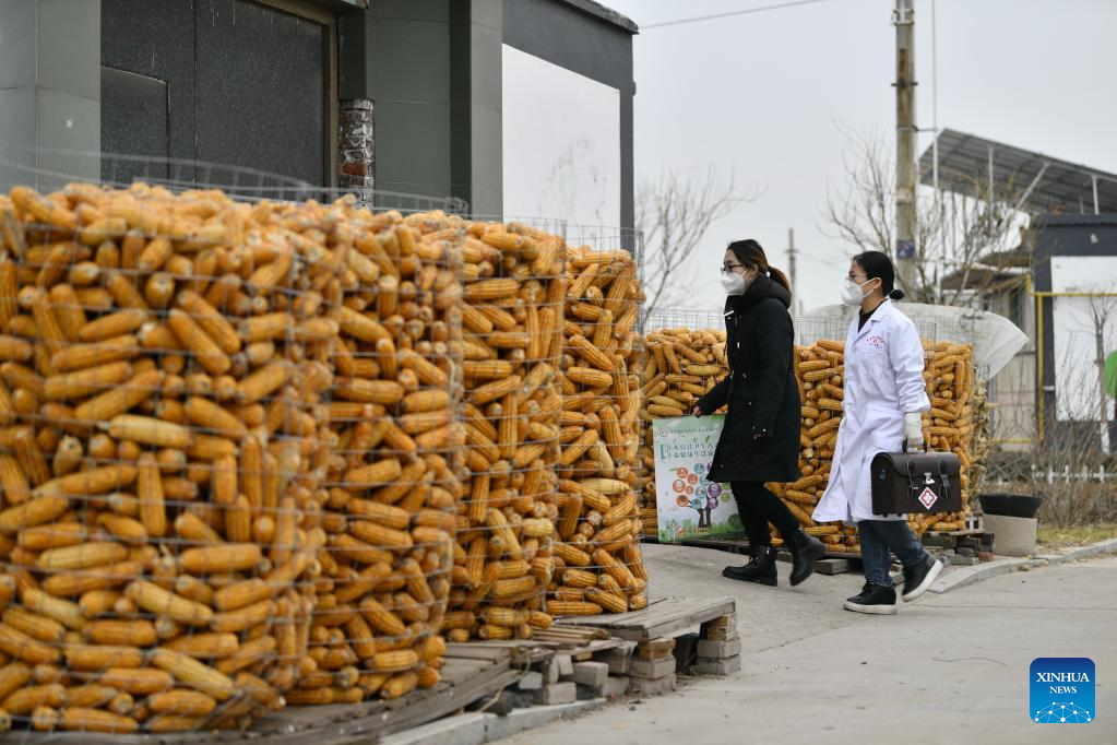 Doctor Sun Qingliang(R) goes for home visits in Wangdadiao Village, Fengnan District of Tangshan City, north China's Hebei Province, Jan. 11, 2023. As China now is entering a new phase of COVID response, Fengnan District has geared up to strengthen the roles of grassroots health facilities against the highly contagious virus. More than 500 health teams comprising over 1,100 medical personnel have been assembled to provide services for rural residents in the district. (Xinhua/Mu Yu)