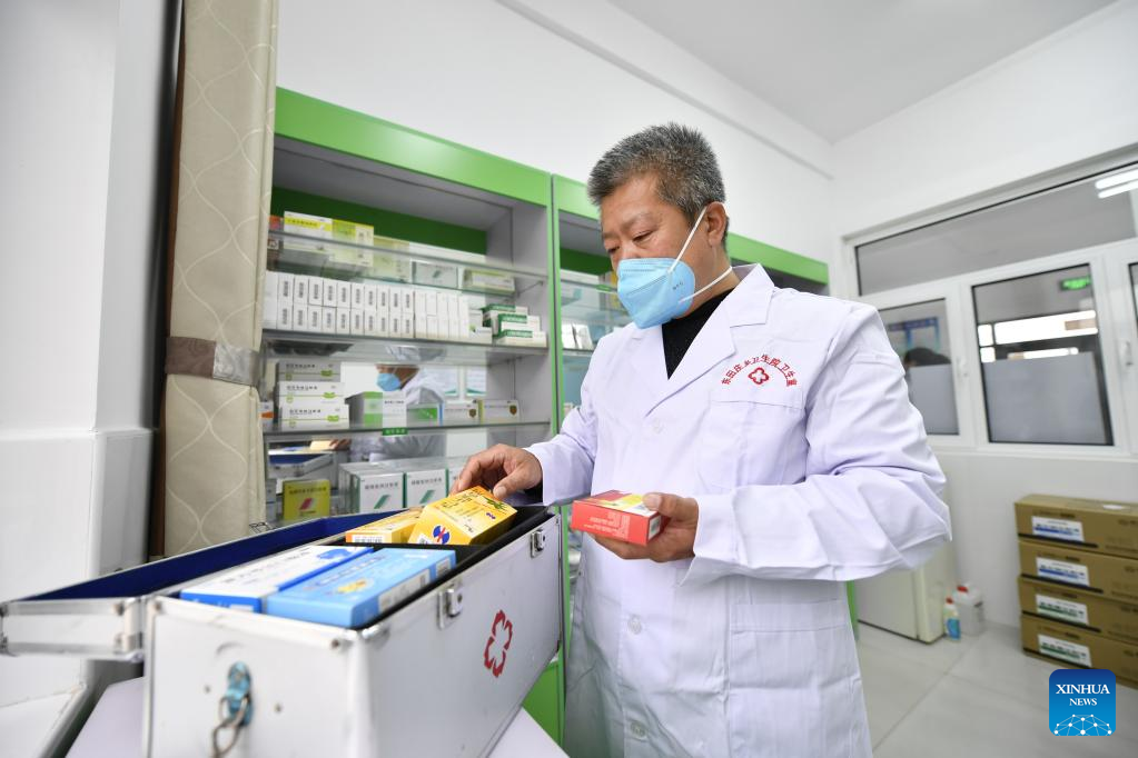 Doctor Sun Qingliang prepares medicines for home visits at a village clinic in Wangdadiao Village, Fengnan District of Tangshan City, north China's Hebei Province, Jan. 11, 2023. As China now is entering a new phase of COVID response, Fengnan District has geared up to strengthen the roles of grassroots health facilities against the highly contagious virus. More than 500 health teams comprising over 1,100 medical personnel have been assembled to provide services for rural residents in the district. (Xinhua/Mu Yu)