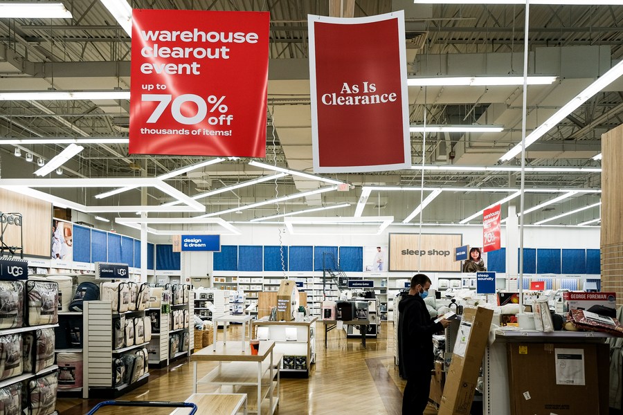 A man is seen at a Bed Bath & Beyond store in New York, the United States, on Jan. 5, 2023. (Photo by Ziyu Julian Zhu/Xinhua)