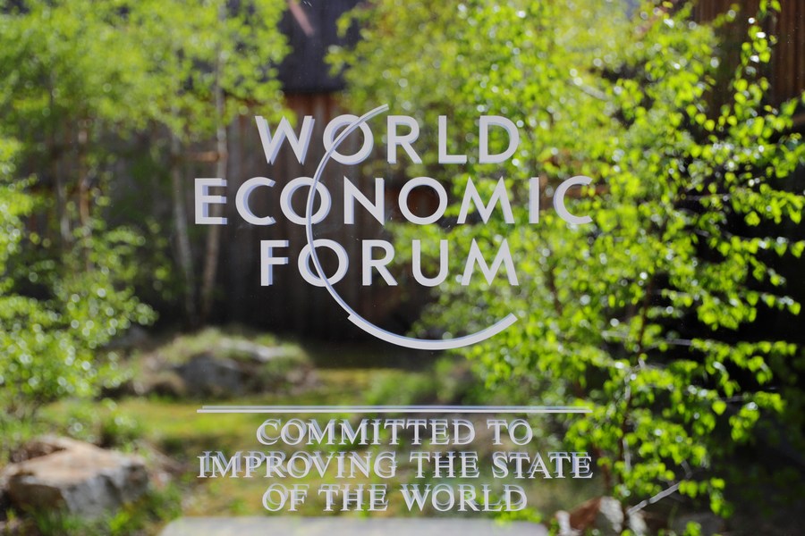 The sign for the World Economic Forum (WEF) Annual Meeting 2022 is seen in Davos, Switzerland, May 21, 2022. (Xinhua/Zheng Huansong)