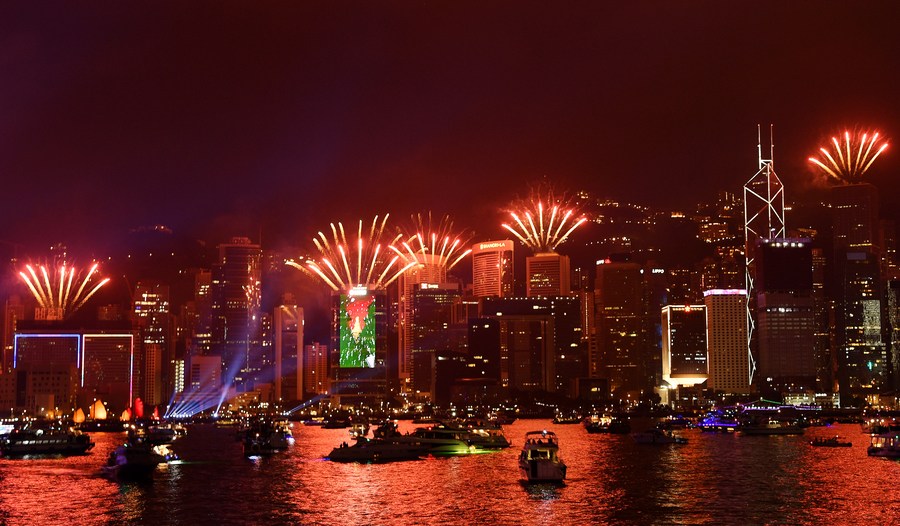 Fireworks explode to celebrate the New Year in Hong Kong, south China on Jan. 1, 2023. (Xinhua/Chen Duo)