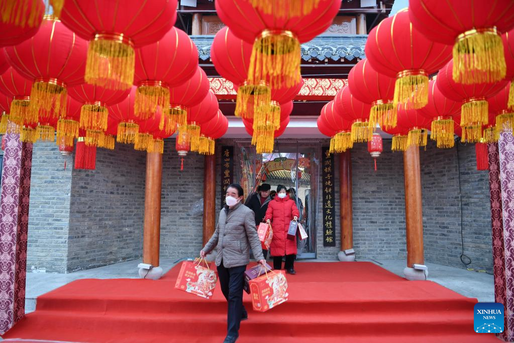 Customers visit a Spring Festival fair in Fengrun District of Tangshan, north China's Hebei Province, Jan. 12, 2023.