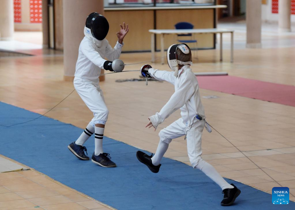 Fencers compete during the Botswana Fencing Federation National Championships in Gaborone, Botswana, on Jan. 14, 2023. The Botswana Fencing Federation (BFF) held their first national championship tournament of the year in Gaborone on Saturday to prepare for the Cadet Junior African Championship, which will be held from Feb. 15 to 21 in Accra, Ghana. (Photo by Tshekiso Tebalo/Xinhua)