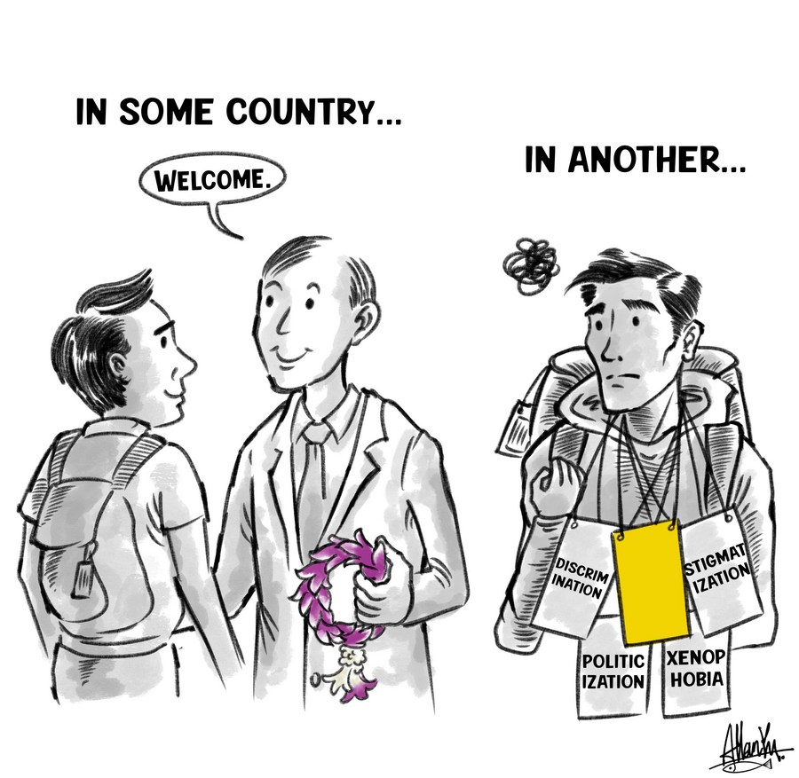 The welcoming garland vs. The alarming yellow badge --