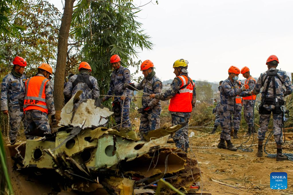 The plane operated by Nepal's Yeti Airlines was flying from Kathmandu to Pokhara with 68 passengers and four crew members on board, when it went down into the Seti River gorge on Sunday, and 68 bodies had been recovered from the crash site. (Photo by Sulav Shrestha/Xinhua)