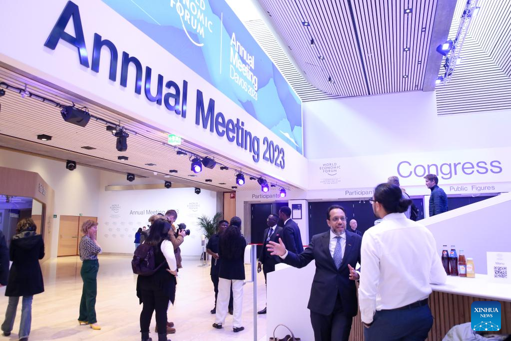 Participants attend the World Economic Forum (WEF) Annual Meeting 2023 in Davos, Switzerland, Jan. 16, 2023. The WEF's annual meeting opened on Monday in the Swiss town of Davos. (Xinhua/Chen Wenxian)