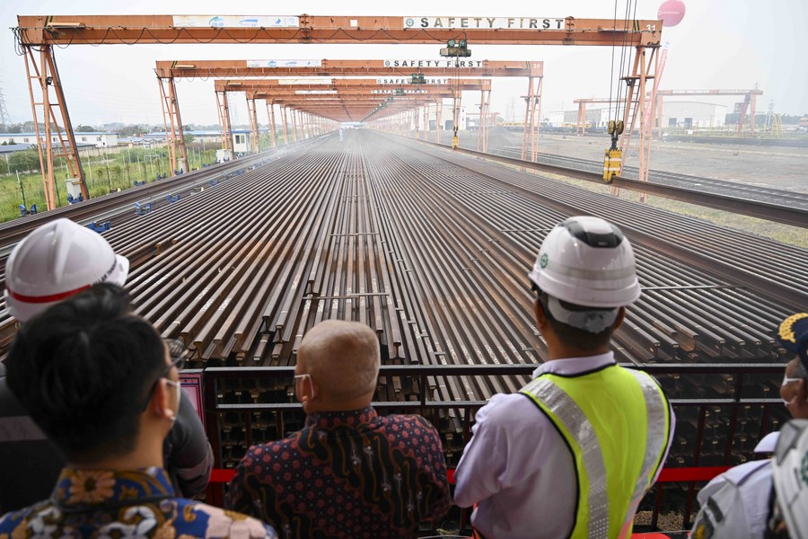 A total of 1,168 pieces of 500-meter-long steel rails are needed for the 142.3-km line, and each of those long rails was welded in 15 steps from 50-meter steel rails imported from China. The work has been jointly completed by Chinese and Indonesian employees.
