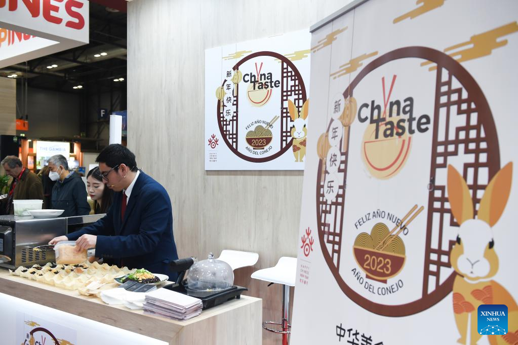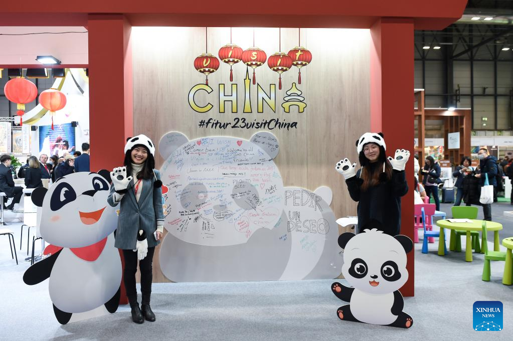 Photo taken on Jan. 18, 2023 shows an exhibition booth of China at the International Tourism Fair FITUR 2023 in Madrid, Spain. The fair, which kicked off here on Wednesday, will last till Jan. 22. (Photo by Gustavo Valiente/Xinhua)