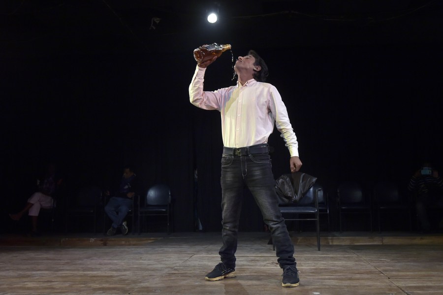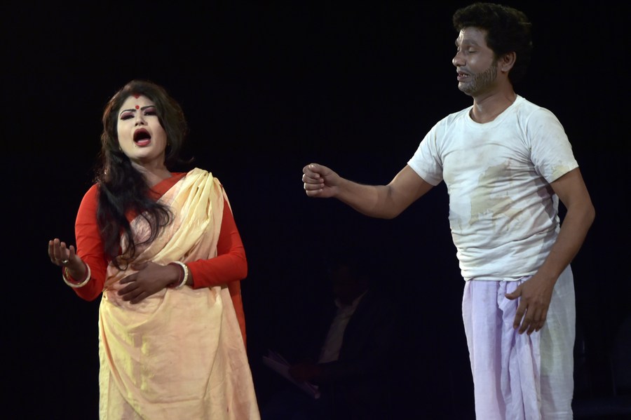 An artist performs in a jatra (a popular folk-theater form of Bengali theater) in Dhaka, Bangladesh Jan. 18, 2023. (Xinhua/Salim)■
