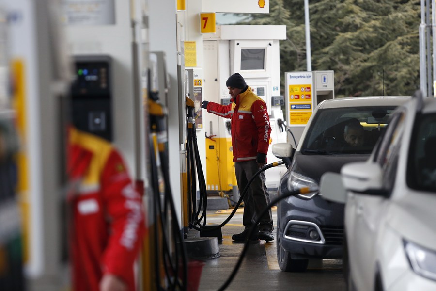 A staff member works at a gas station in Ankara, Türkiye, on Jan. 11, 2023. (Photo by Mustafa Kaya/Xinhua)