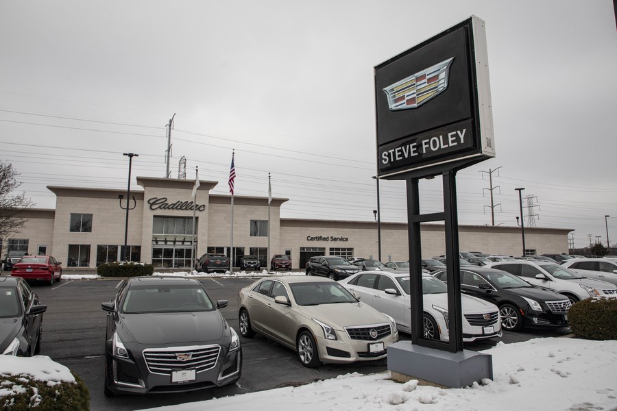 Vehicles are seen at Steve Foley Cadillac in Northbrook, Illinois, the United States, on Jan. 5, 2021. (Photo by Joel Lerner/Xinhua)
