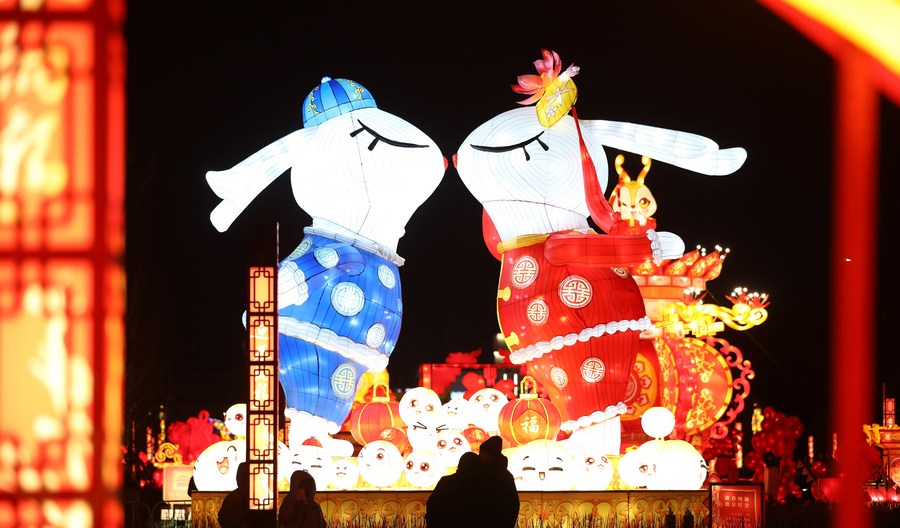 This photo shows rabbit-themed Chinese lanterns at the square in front of the Shenyang Palace Museum in Shenyang, capital of northeast China's Liaoning Province, Jan. 15, 2023.(Xinhua/Yao Jianfeng)
