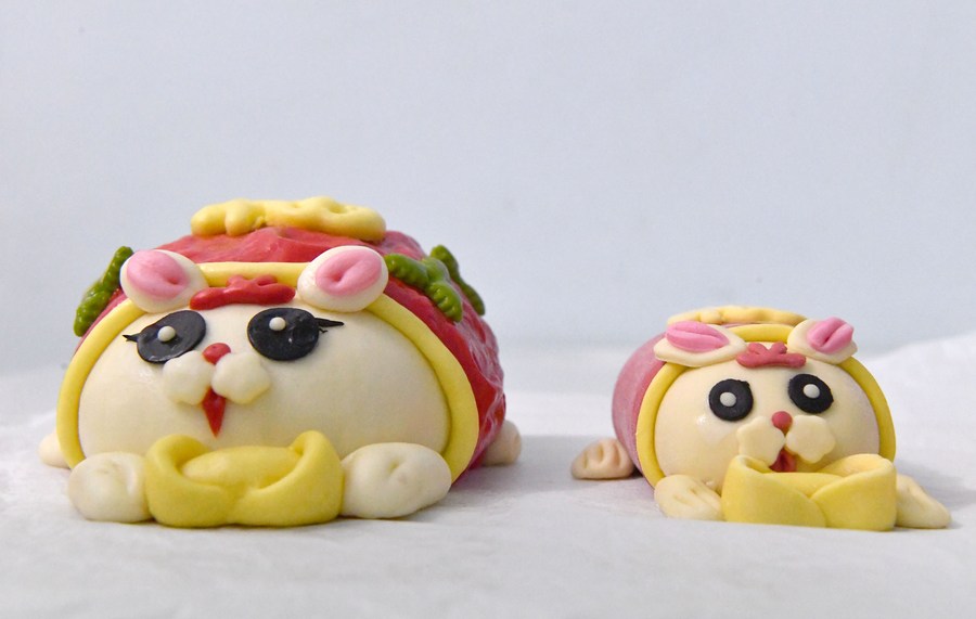 This photo taken on Jan. 13, 2023 shows rabbit-inspired steamed buns made by a pastry workshop in Luoyang, central China's Henan Province. (Xinhua/Li Jianan)