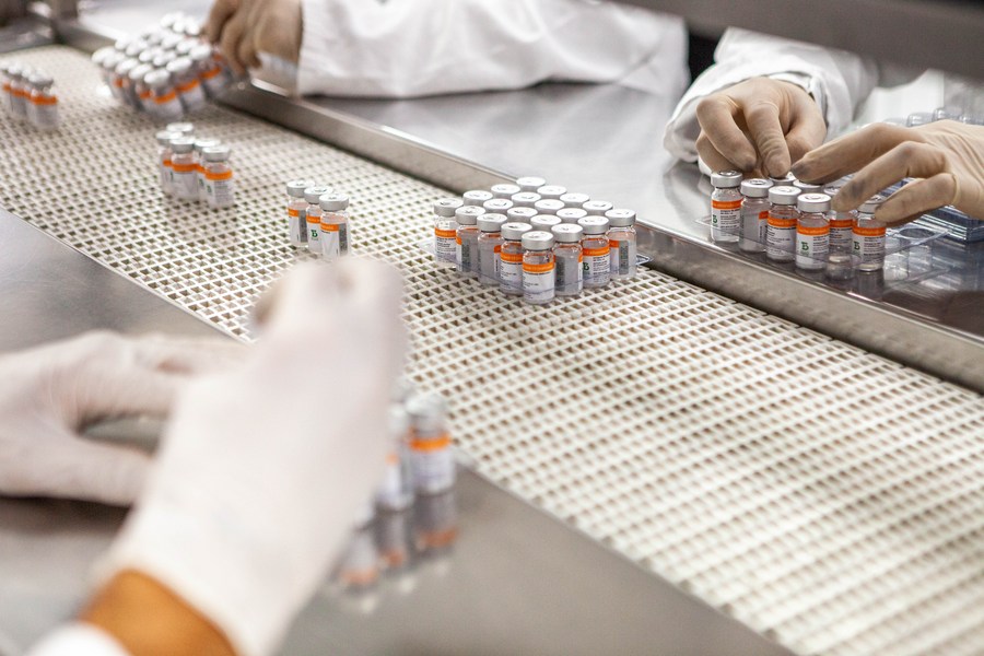 This photo taken on Aug. 31, 2022 shows the production line of COVID-19 vaccine under the Butantan Institute in the state of Sao Paulo, Brazil. Since June 2020. (Butantan Institute/Handout via Xinhua)