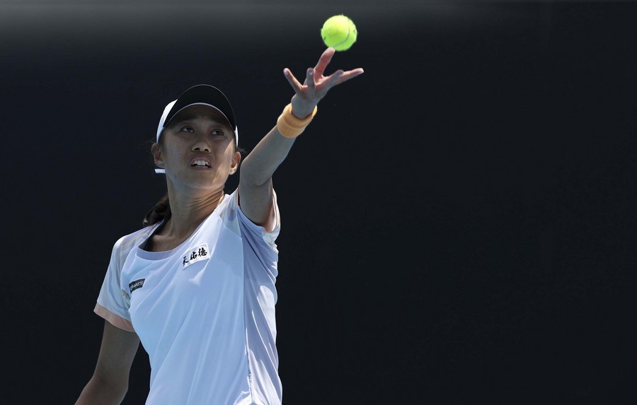 Zhang Shuai of China serves during the women's singles third round match against Katie Volynets of the United States at Australian Open tennis tournament in Melbourne, Australia on Jan. 21, 2023. (Xinhua/Bai Xuefei)