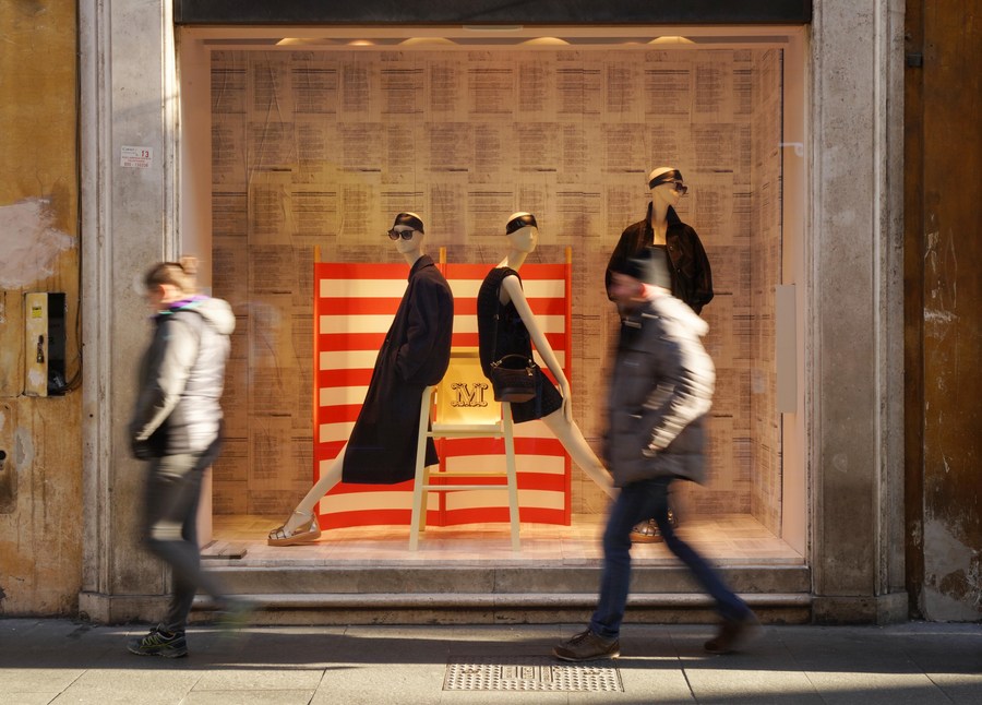 People walk past a store in Rome, Italy, March 2, 2022. (Xinhua/Jin Mamengni)