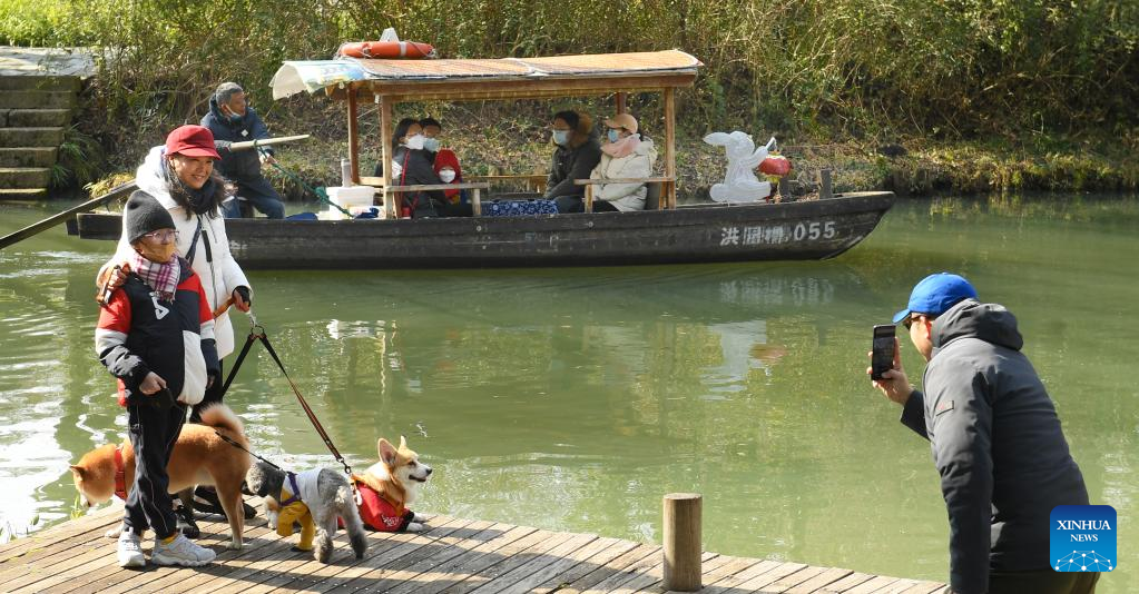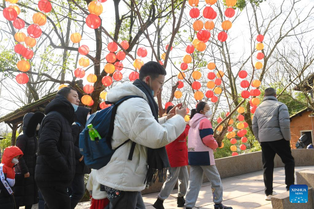 Tourists visit Xixi National Wetland Park in Hangzhou, capital of east China's Zhejiang Province, Jan. 24, 2023. Various activities were held here to celebrate the Chinese Lunar New Year. (Xinhua/Weng Xinyang)