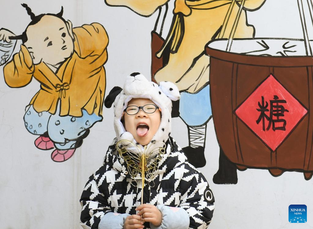 A child poses with a sugar painting butterfly at Xixi National Wetland Park in Hangzhou, capital of east China's Zhejiang Province, Jan. 24, 2023. Various activities were held here to celebrate the Chinese Lunar New Year. (Xinhua/Weng Xinyang)