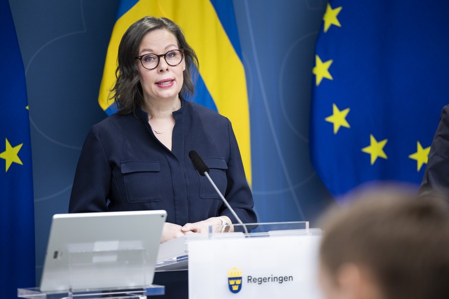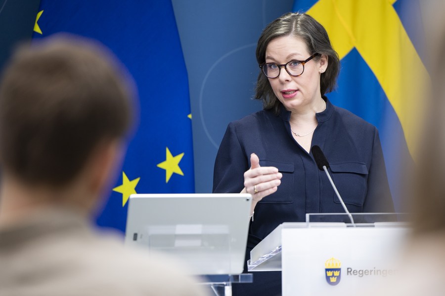 Sweden's Minister for Migration Maria Malmer Stenergard speaks at a press conference in Stockholm, Sweden, Jan. 24, 2023. (Ninni Andersson/Government Offices of Sweden/Handout via Xinhua)