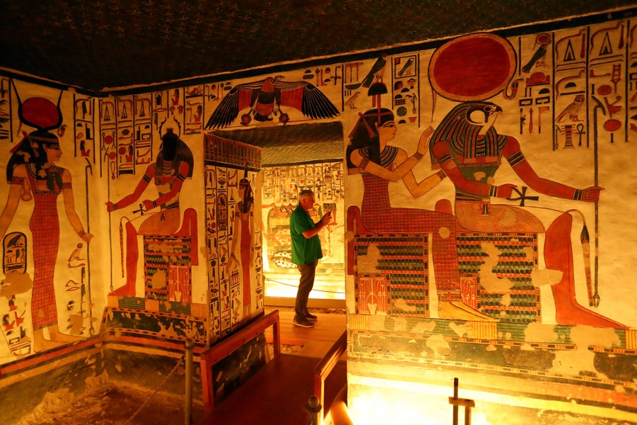 A tourist visits the tomb of Nefertari at the Valley of the Queens in Luxor, Egypt, on Jan. 24, 2023. (Xinhua/Sui Xiankai) ■