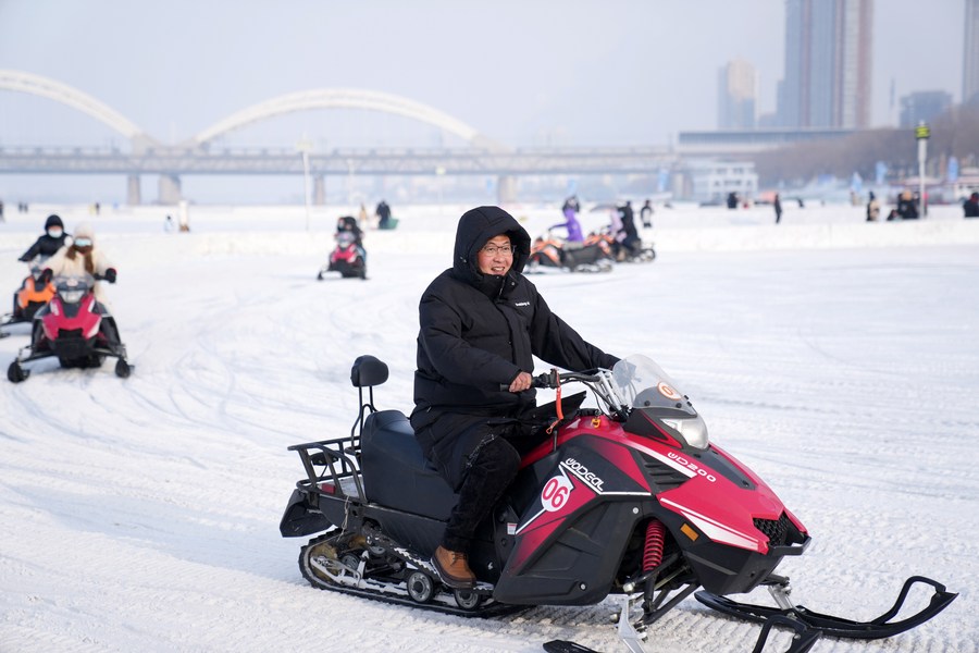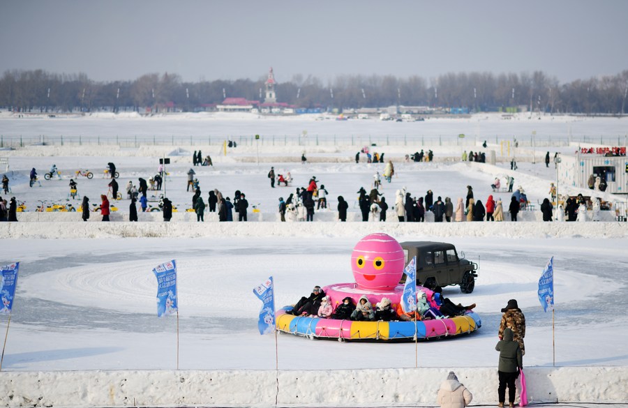 People have fun at Harbin Songhua River Ice and Snow Carnival in Harbin, northeast China's Heilongjiang Province, Jan. 22, 2023. (Xinhua/Wang Jianwei)
