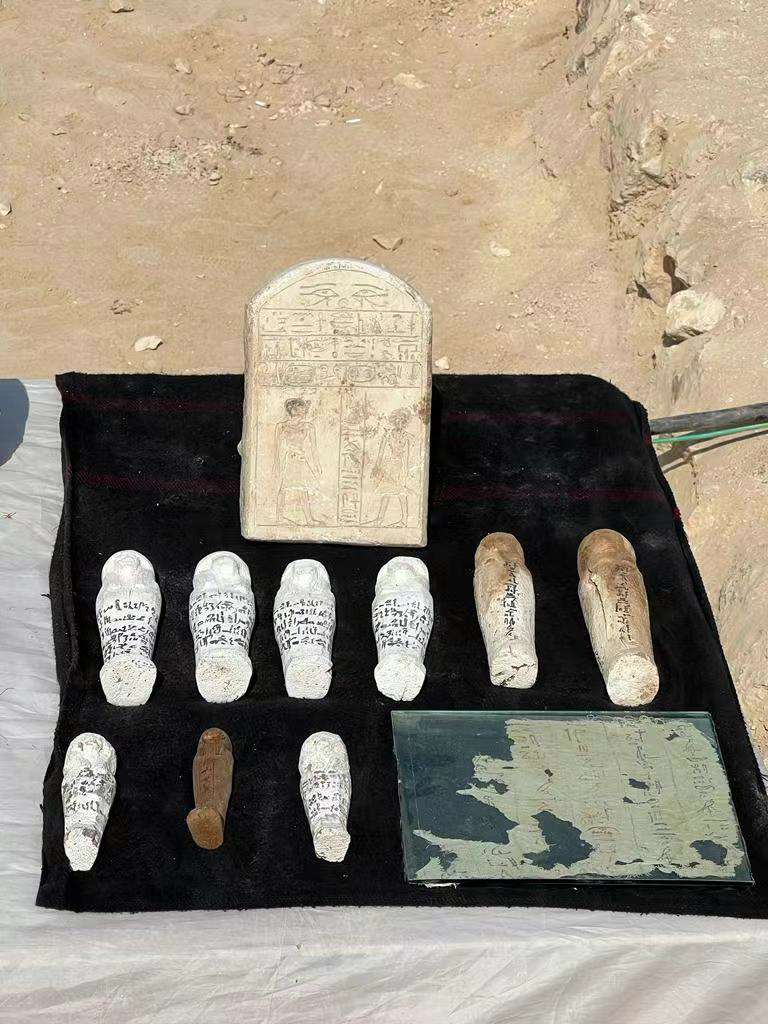 The undated photo shows cultural relics unearthed at ancient family tombs in Luxor, Egypt. (Egyptian Ministry of Tourism and Antiquities/Handout via Xinhua)