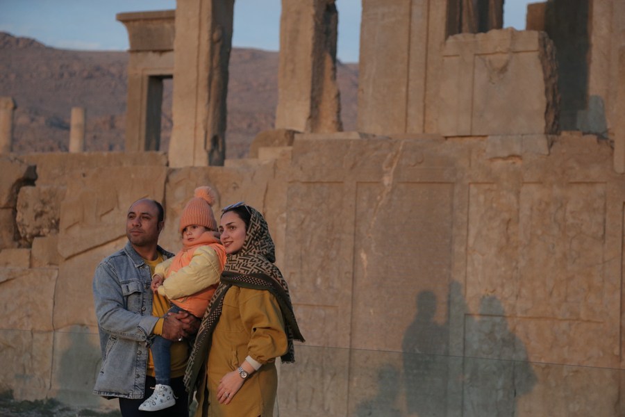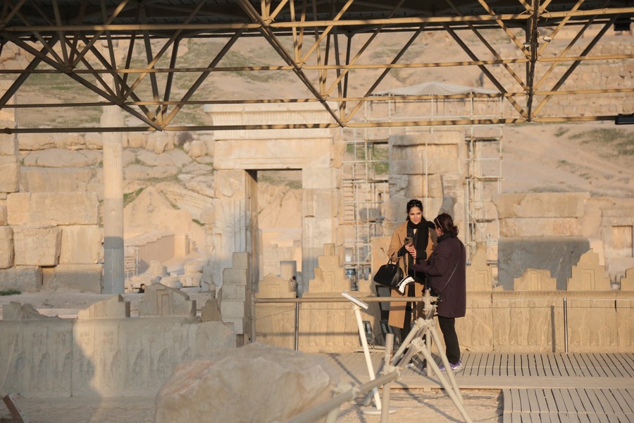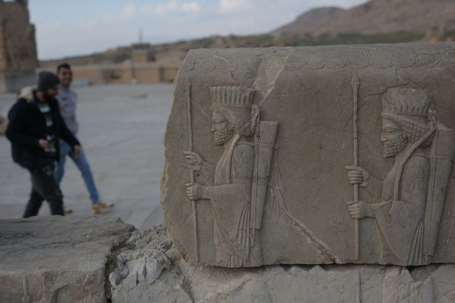 Tourists visit the ruins of Persepolis near the city of Shiraz in southern Iran, Jan. 25, 2023. Persepolis, a UNESCO World Heritage Site, was the capital of the Achaemenid Empire of Persia (550-330 BC). The importance and quality of the monumental ruins make it a unique archaeological site. (Xinhua/Gao Wencheng)