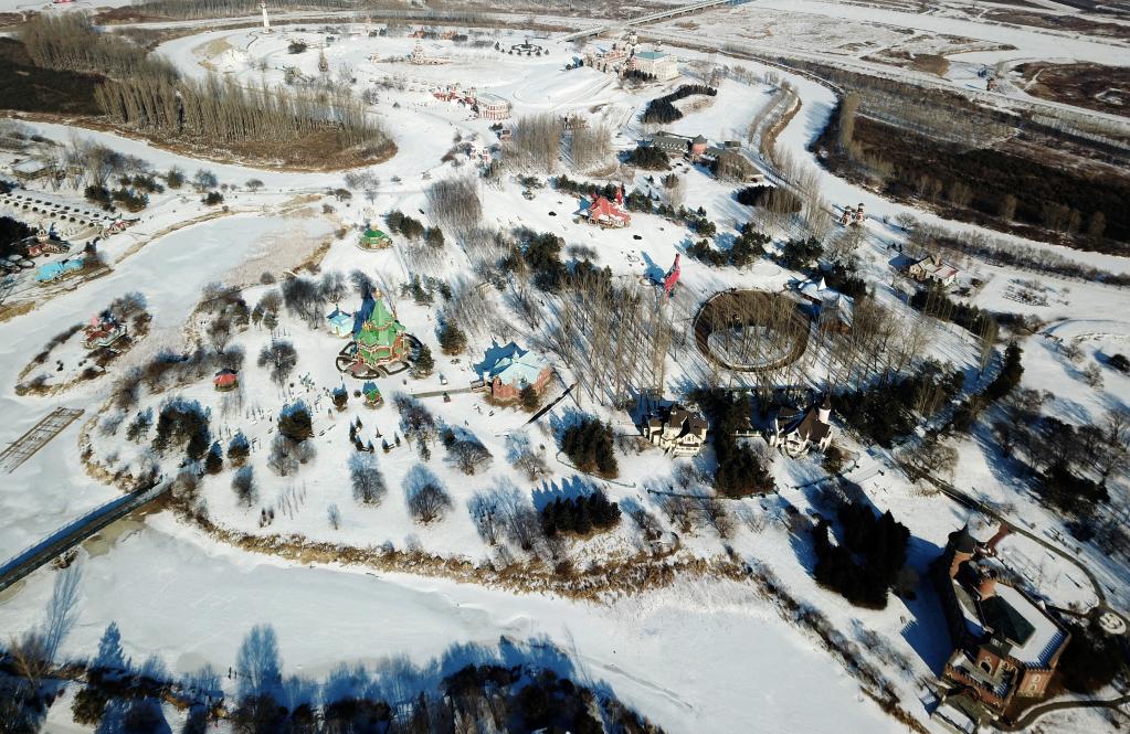 This aerial photo taken on Jan. 26, 2023 shows part of the Volga Manor in Harbin, northeast China's Heilongjiang Province. (Xinhua/Wang Jianwei)