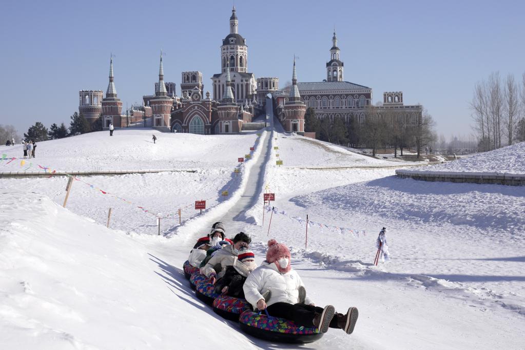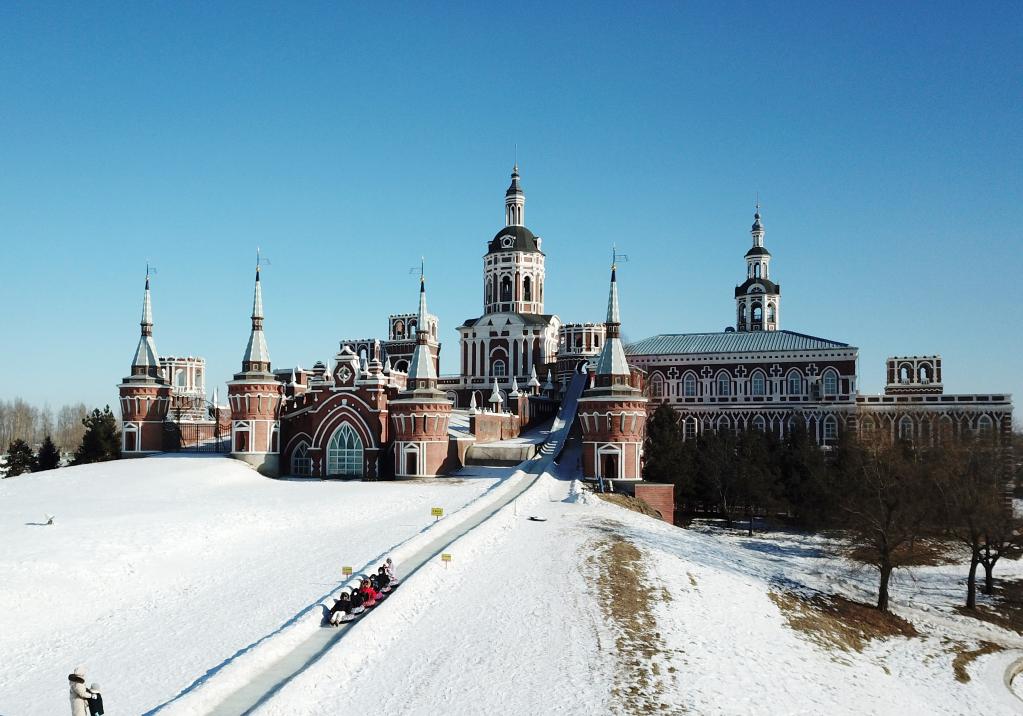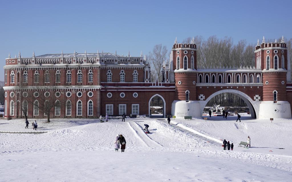 People enjoy themselves at the Volga Manor in Harbin, northeast China's Heilongjiang Province, Jan. 26, 2023.(Xinhua/Wang Jianwei)