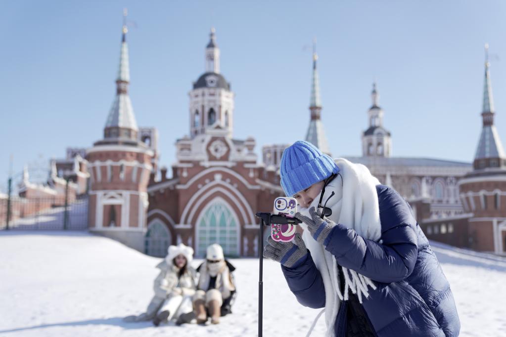 A tourist takes photos at the Volga Manor in Harbin, northeast China's Heilongjiang Province, Jan. 26, 2023. (Xinhua/Wang Jianwei)